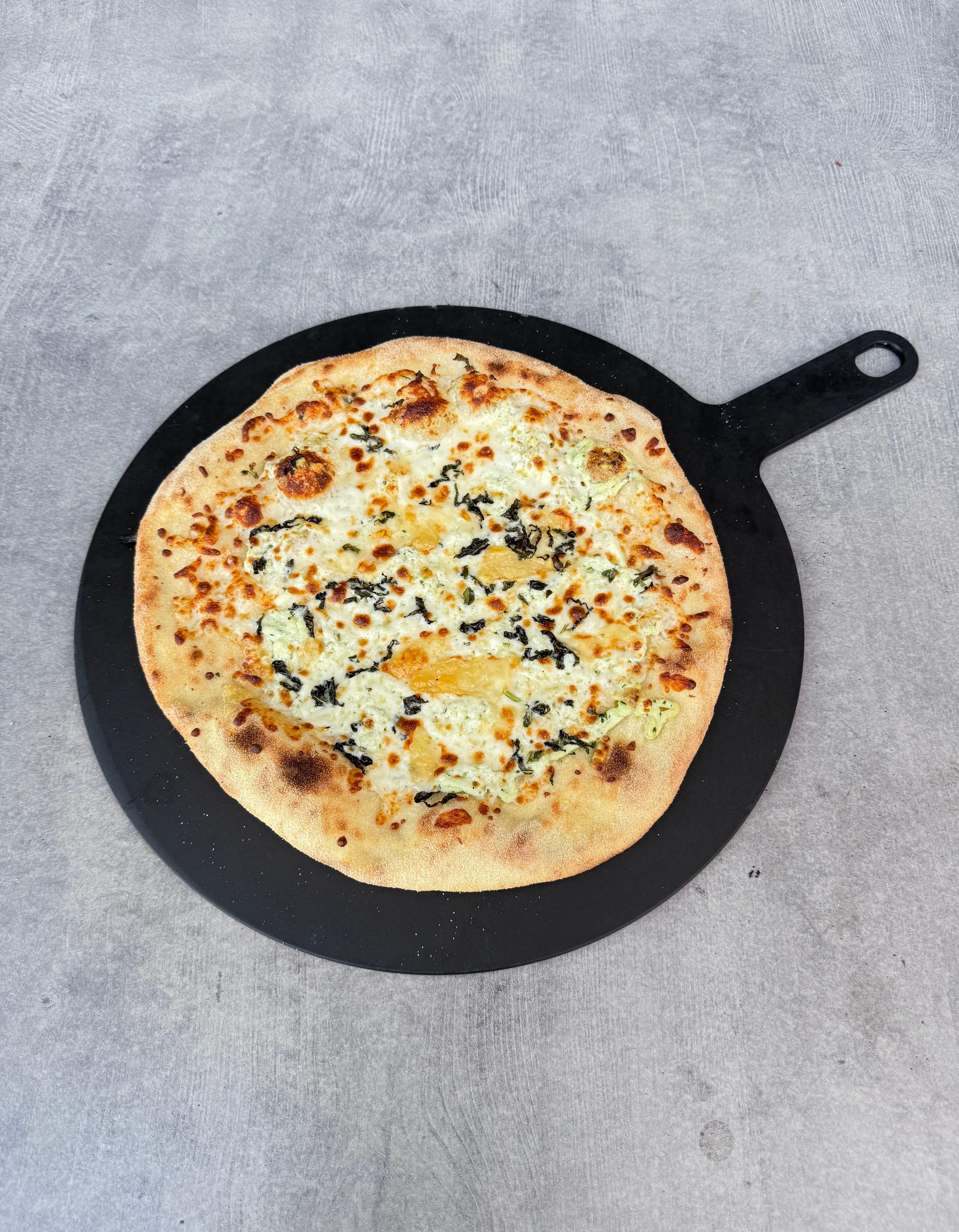 garlic sauce, ricotta, mozzarella, parmesan, basil
